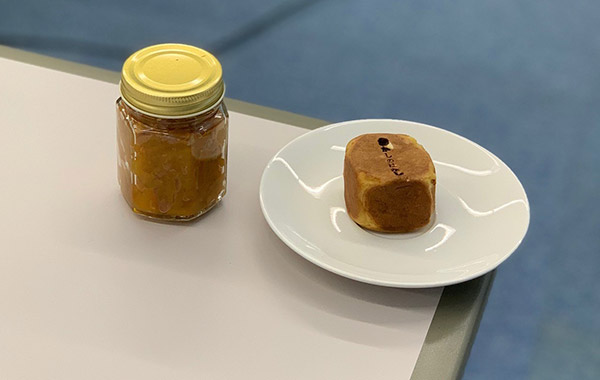 参加者に事前に届けられた六法焼と甘夏ジャム。いずれも大島で作られており、入所者の方々に親しまれている。
