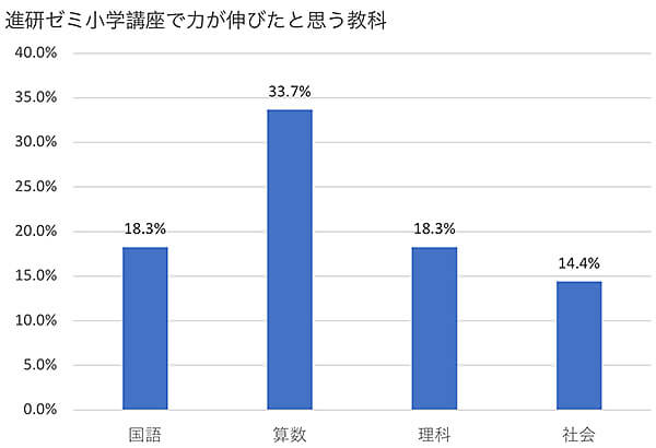 進研ゼミで力が伸びた教科として最も多かった回答は「算数」