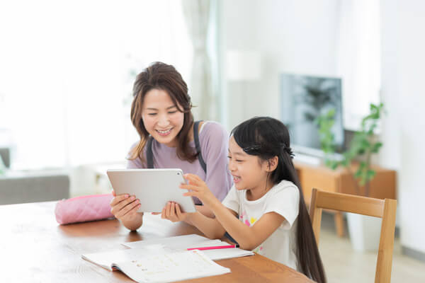特に1つめのポイントについては、文部科学省が「タブレットは30cm以上目から離して見る」「30分に1回はタブレットの画面から目を離し、20秒以上遠くを見る」などを勧めています。