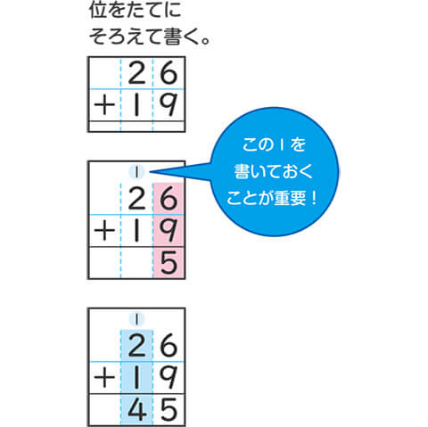 小学校低学年ではたし算やひき算でのミスが意外と多いもの。かけ算やわり算でも使う基本的な計算なので、間違えないための習慣をしっかりつけておくことが重要です。