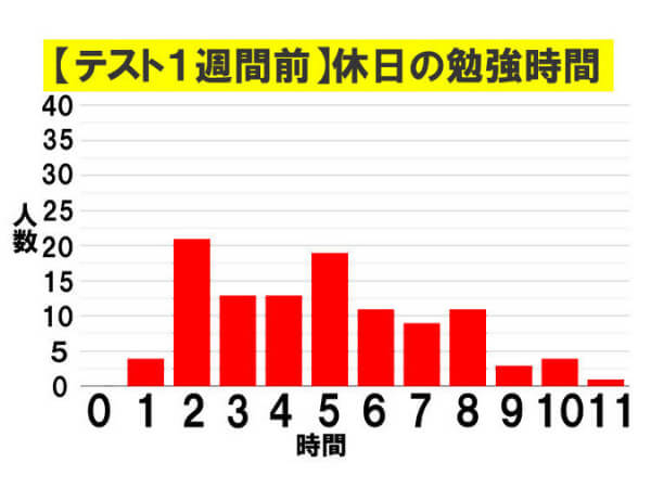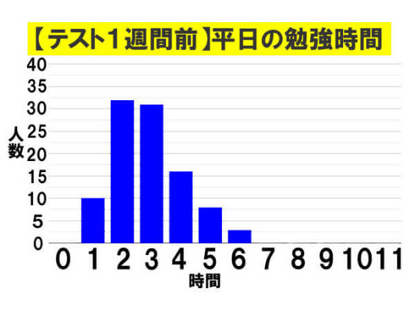 まず初めに、勉強と部活をがんばって大学合格をもぎとった先輩たちのテスト1週間前の勉強時間をご覧ください。