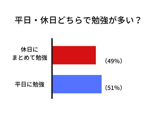 次に、平日と休日どちらで勉強しているか聞いてみました。
