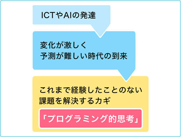 プログラミング的思考と論理的思考との違いを見てみると、プログラミング的思考が生きていくうえでの大きな武器となることがおわかりいただけるのではないでしょうか。
