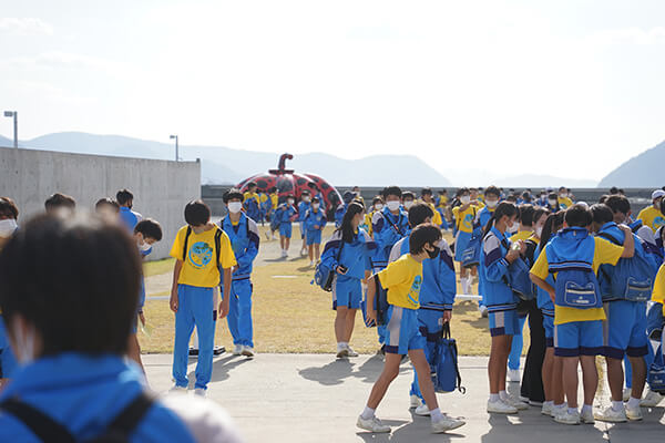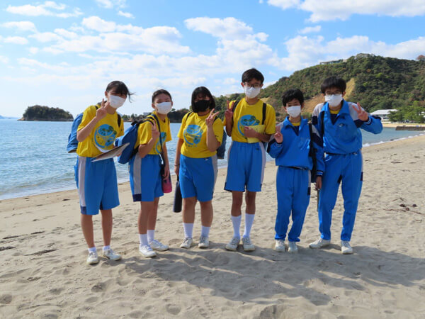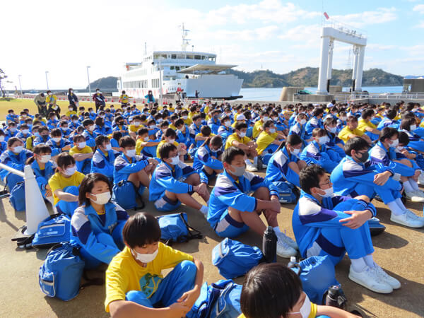 今回プログラムに取り組んだのは、倉敷第一中学校2年生の生徒約300人です。担任の教員達は2021年1月より計画をスタートしました。当時1年生だった生徒達は既に環境に焦点をあててSDGsを学んでおり、教員達は次のステップとして、SDGsを別の観点から捉え、島の持続可能な生活や、地域のコミュニティの大切さ、本当の豊かさなどについても考えたり気づいたりする学習の機会を作れないかと考え、活動の場に直島を選びました。