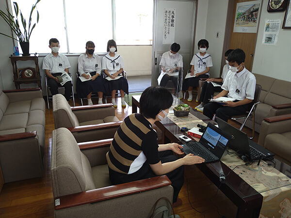 学校でのレクチャーは、校長室より各教室へ配信された。