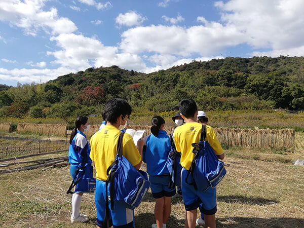 直島コメづくりプロジェクトの拠点でもある積浦の田んぼで「自給自足の生活はどんな感じだろう。豊かさとは何か?」というミッションワークに取り組む生徒