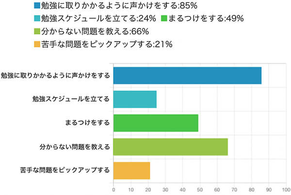 85%の保護者が「勉強に取りかかるように声かけ」を実施
