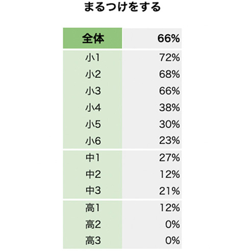 なお、中1では57%、中3では52%とやや数値が上昇。これは、進学時や受験勉強のフォローを保護者が行っているためと思われます。