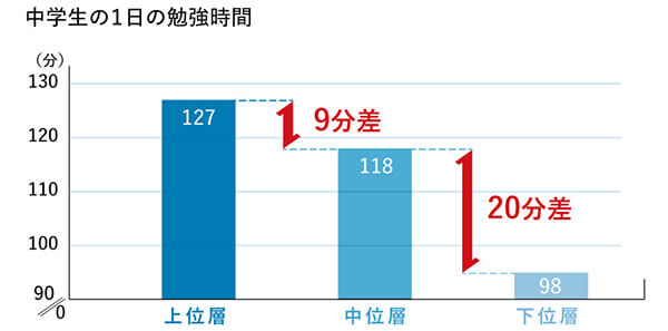 成績上位層と中位層、学習時間の差はたった9分