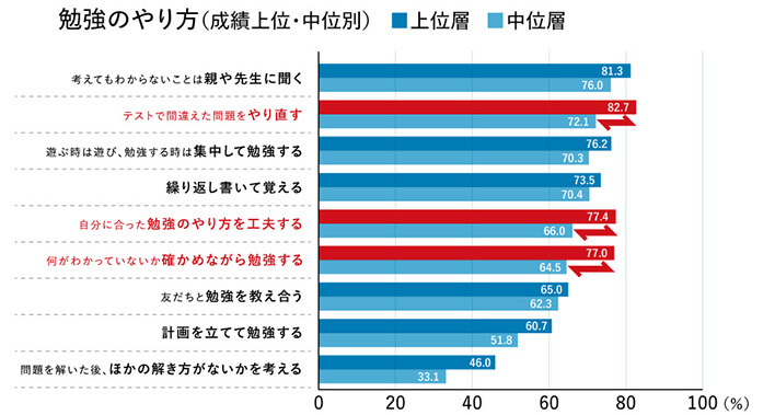 成績上位層は、勉強のやり方を工夫している