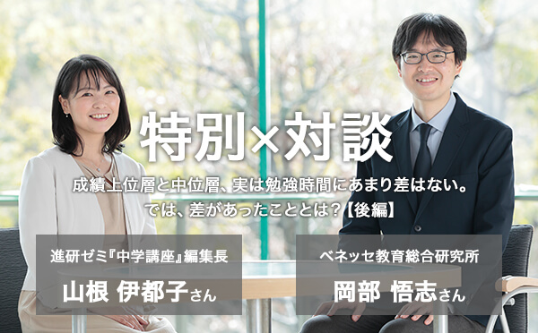 調査・研究の観点から子どもたちの教育を考えるベネッセ教育総合研究所と、日々お客様の声に耳を傾け教材を制作する進研ゼミ『中学講座』。今回は、それぞれを代表するお二人にお越しいただき、まもなく始まる新学期に向けて、成績をUPさせるうえで重要な「勉強のやり方」について議論いただきました。後編では、勉強以外の観点から、成績上位層と中位層の違い、さらには今この瞬間から実践したい習慣について議論していただきました。(前編はこちらから)
