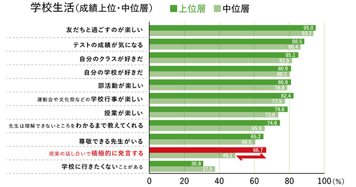 成績上位層ほど、自分の意見をアウトプットできている