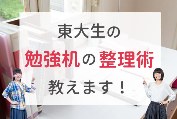 次の記事からは、勉強エリア内の教材類の整理術や、勉強以外のエリアの誘惑物や思い出グッズなどの整理術など、東大生の先輩たちが実践していた方法を紹介していきますのでお楽しみに。
