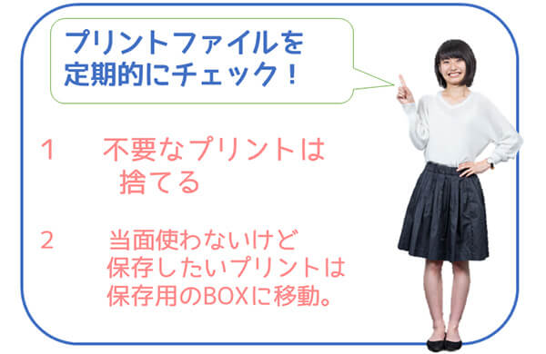 まだ見るプリントは専用の保存場所(ファイルBOXなど)に保存。