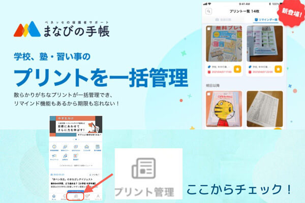 また保護者あてのプリントの管理をペーパーレス化するなら、アプリ「まなびの手帳」の「プリント管理」機能もおススメです。