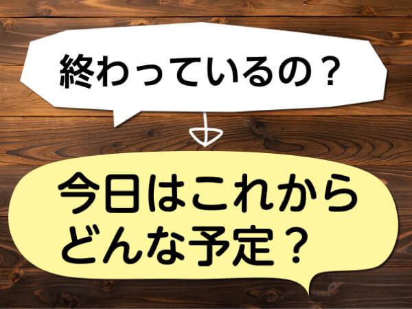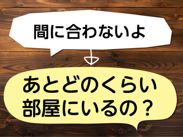 「間に合わないよ」→「あとどのくらい部屋にいるの?」