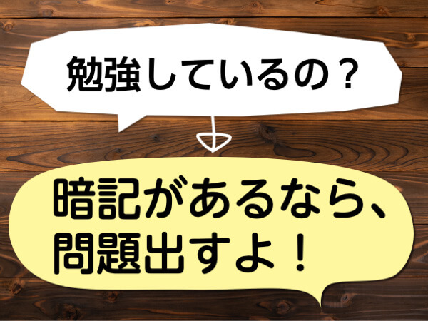 「勉強しているの?」→「暗記があるなら、問題出すよ!」