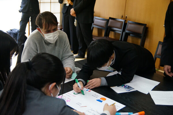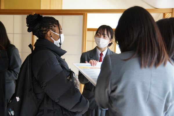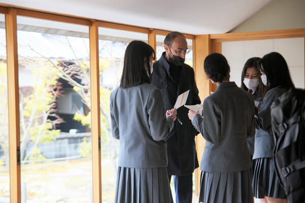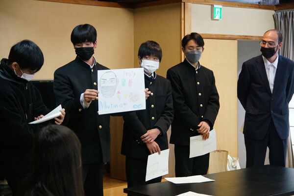 初めは緊張した様子の生徒たちも、本村の地図を手に道順の確認をしたり、作品の感想を伝え合ったり、講師自身のことについて質問したりと積極的に英語でのコミュニケーションに挑戦していました。