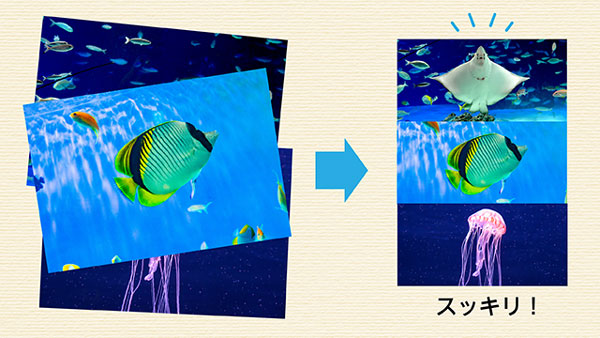 写真をたくさん貼りたいけれど用紙にスペースがないような時は、コラージュしてプリントすればスッキリ。