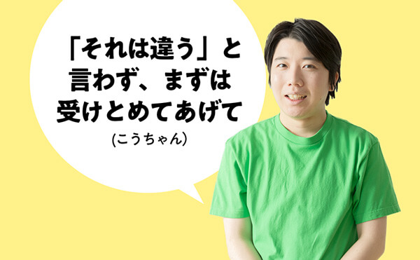 こうちゃん:個人的には、自分なりに考えたことを否定されなかった経験が大きいのかなと思います。「それは違う」と言わず、まずは受け止めてあげてほしいです。