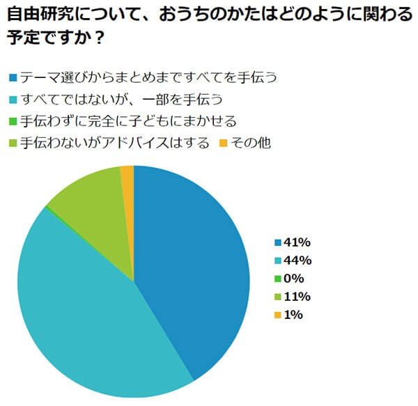 また、手伝わないと回答した保護者の中でも11%が「手伝わないがアドバイスはする」と回答。ほとんどの保護者が何らかの形でお子さまの自由研究に携わることがわかりました。