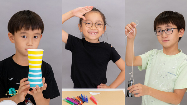 紙コップとわりばし、輪ゴム、セロハンテープがあればすぐにできる実験。「簡単。すぐにできたよ」