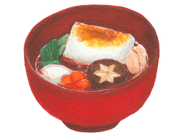 雑煮の汁は、昆布やかつおなどでダシをとり醤油や塩で味付けした「すまし汁」、味噌を用いた汁、小豆を用いた小豆汁に分けられます。味噌を用いた汁は近畿地方や福井県など、小豆を用いた小豆汁は鳥取県・島根県などで、そのほかの地域では「すまし汁」が主流となっています。