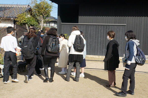 直島中1年生の生徒とALT教諭のグループは本村を散策します