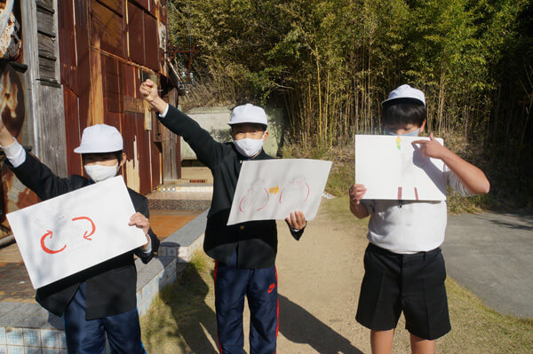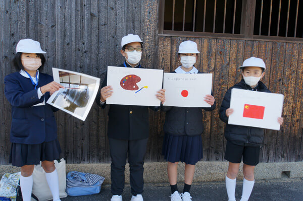 児童たちは作品の入口前で待機し、直島中学校の生徒と一緒に本村を散策するALT教諭に、作品の特徴や注目してほしいポイントなどをオリジナルのクイズを交えながら紹介します。