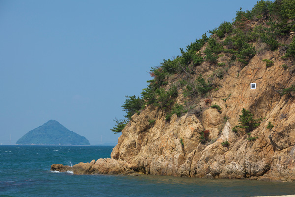 のちに杉本はより過酷な自然環境の中に作品を設置します。悪天候時には潮を浴びることもある岸壁に、ベネッセハウス ミュージアムのテラスに展示されているものと同じ「海景」シリーズの作品を設置しました。
