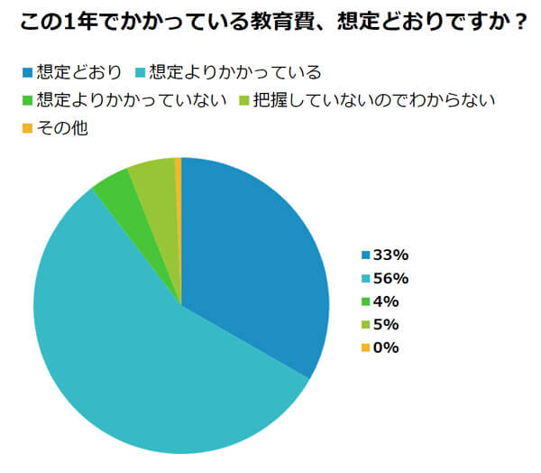 この1年間でかかった教育費が「想定通り」だったか、または「想定よりかかったか」について、「まなびの手帳」で実施したアンケートよりご紹介します。