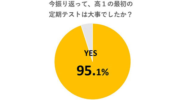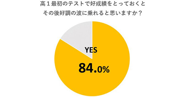 ご覧いただいた通り、高1最初のテストが好成績だと、その後も好調に成績が推移すると答えた先輩が大多数です。