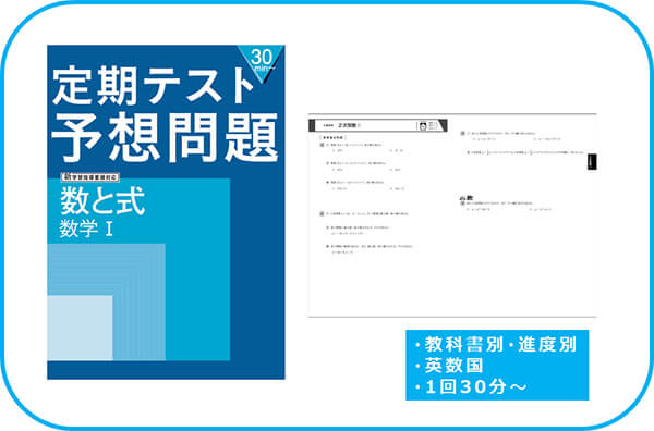 例年「ゼミ」受講生に人気の『定期テスト予想問題』は、進学高校の教科書別に、頻出問題が厳選されて出題されるため、得点に直結する対策ができます。
