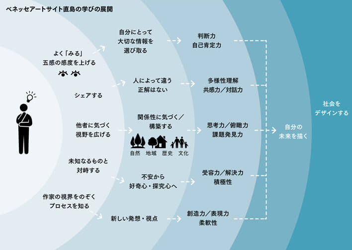 ベネッセアートサイト直島は、ベネッセの企業理念である「ベネッセ=よく生きる」について鑑賞者一人ひとりが気付き考える場を目指しています。
