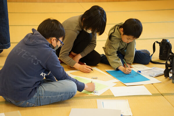 2日間のワークショップをとおして、子どもたちは刻一刻と変化する風景やその中で展開する作品を観て、その時感じた自分の気持ちや他の人の考えを大切に受けとめながら、豊かに想像力を膨らませていました。