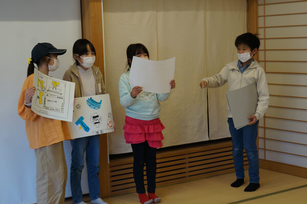 最後は家プロジェクトを鑑賞する中で得られたヒントをもとに、チームに分かれて「新しい家プロジェクト」を考え、「プロジェクト提案シート」にまとめて発表してもらいました。