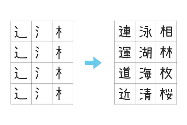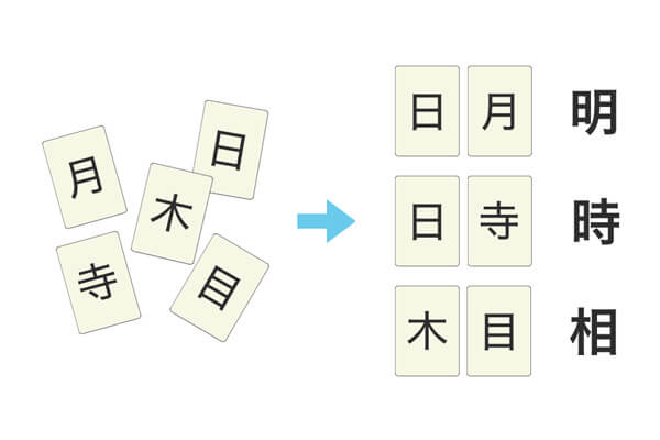 ステップ2:それらの漢字のカードを組み合わせて、別の漢字を作る