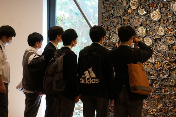 見方に一つの正解がない現代アートを前に生徒たちは自由に感じたこと、抱いた印象を話し合います。