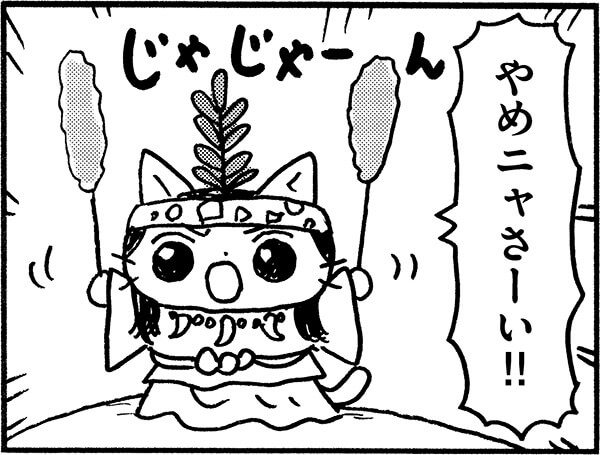 キャラクターに親しみを持ってもらうためにも欠かせないギャグの要素は、史実に反しないギリギリの範囲で遊ぶというルールでやっています。邪馬台国の時代の争乱をギャグ満載のネコのケンカで表現できた時に「このレベルに歴史を落とし込めれば、かなりやさしくわかりやすいものをつくれるのでは」と手応えを感じました。