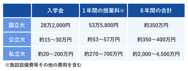 ただ、学費が比較的安い大学でも、6年間の学費を合計すると約2,000万円程度なので、国公立大と比べるとかなり高額なのは事実です。