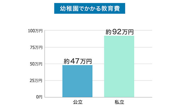 文部科学省によると2021年度に実施した調査では、3年間(3~6歳)の学習費(保護者が子ども学校教育及び学校外活動のために支出した経費の総額)は、公立幼稚園で約47万円、私立幼稚園で約92万円となっています。