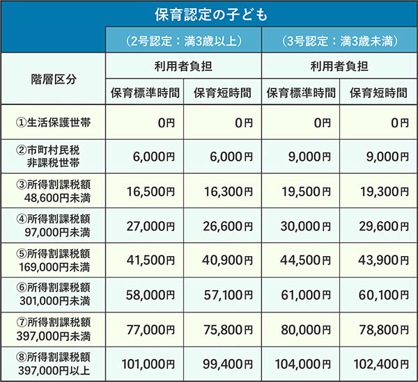 認可保育園の保育料は、「居住地」「世帯の所得」「子どもの人数」「保育時間」などによって変わります。