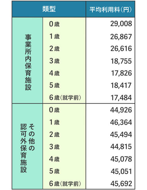 ※保育園の費用は、「内閣府 子ども・子育て支援新制度ハンドブック(施設・事業者向け)(2015年7月改訂版)」および、「令和3年厚生労働省 地域児童福祉事業調査」から引用しています。