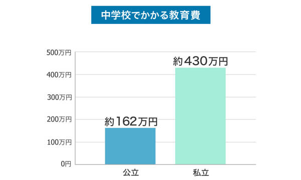 文部科学省の前出の調査では、中学校3年間でかかる学習費は公立で約162万円、私立で約430万円という結果が出ています。
