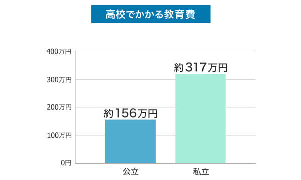 高校3年間(全日制)の学習費は、公立で約156万円、私立で約317万円という調査結果が出ています。