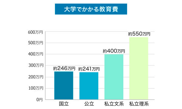 高校卒業までは比較的教育費を抑えることができても、大学進学でかなり出費が増えるのは事実。