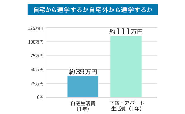 また、国公立大の学費自体は私立大に比べて低くても、自宅を離れる場合は生活費もかかってきます。