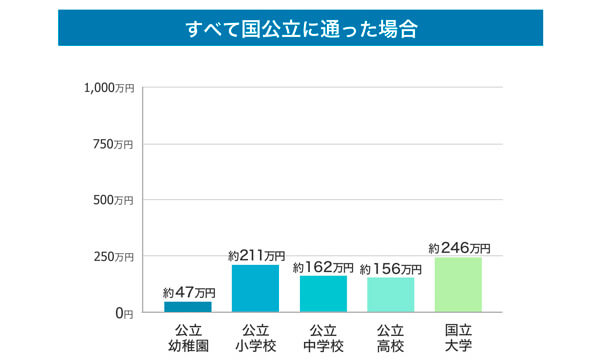 幼稚園から大学まで国公立の学校・施設に通うのは、最もリーズナブルなイメージがあるのではないでしょうか。