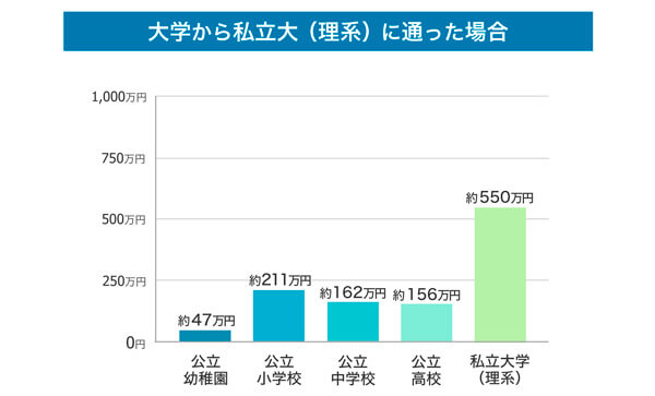 「高校受験・大学受験に向けて塾に通わせるか」「大学で文系学部・理系学部のどちらを選ぶか」「自宅から通うか否か」などによって金額は大きく変わります。