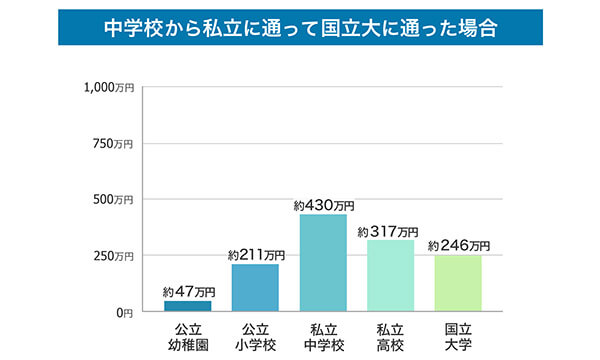 ケース3 中学から私立に通って、国立大(文系)に通った場合